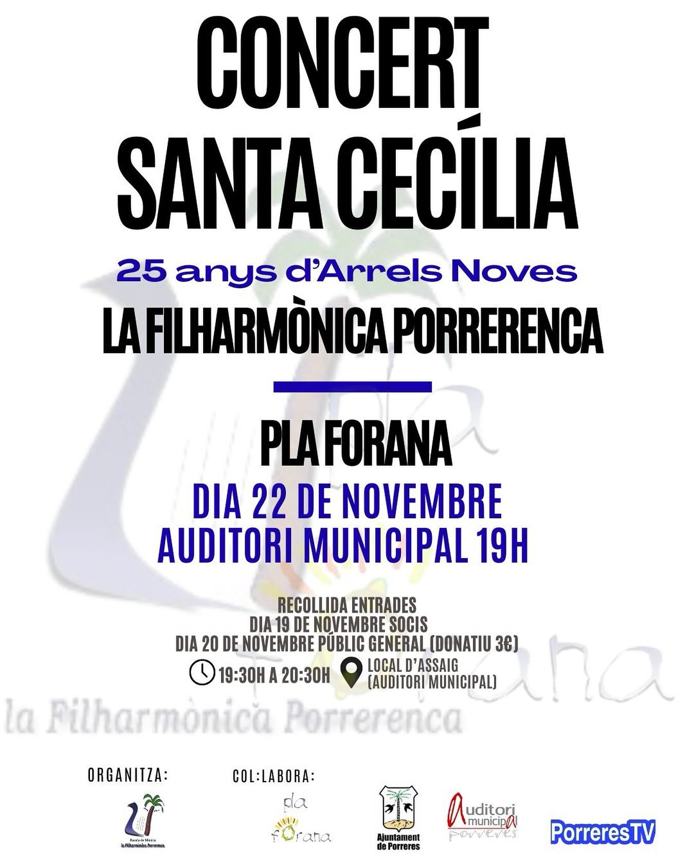 Concert anual de Santa Cecília de Filharmònica Porrerenca que enguany serà conjuntament amb el grup Pla Forana.